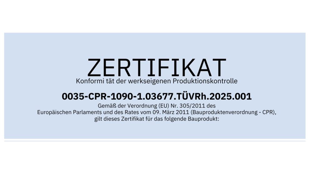 TÜV-Zertifikat für unsere werkseigene Produktionskontrolle
