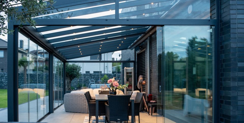 Terrassenüberdachung geschlossen: Schutz vor Wind und Wetter