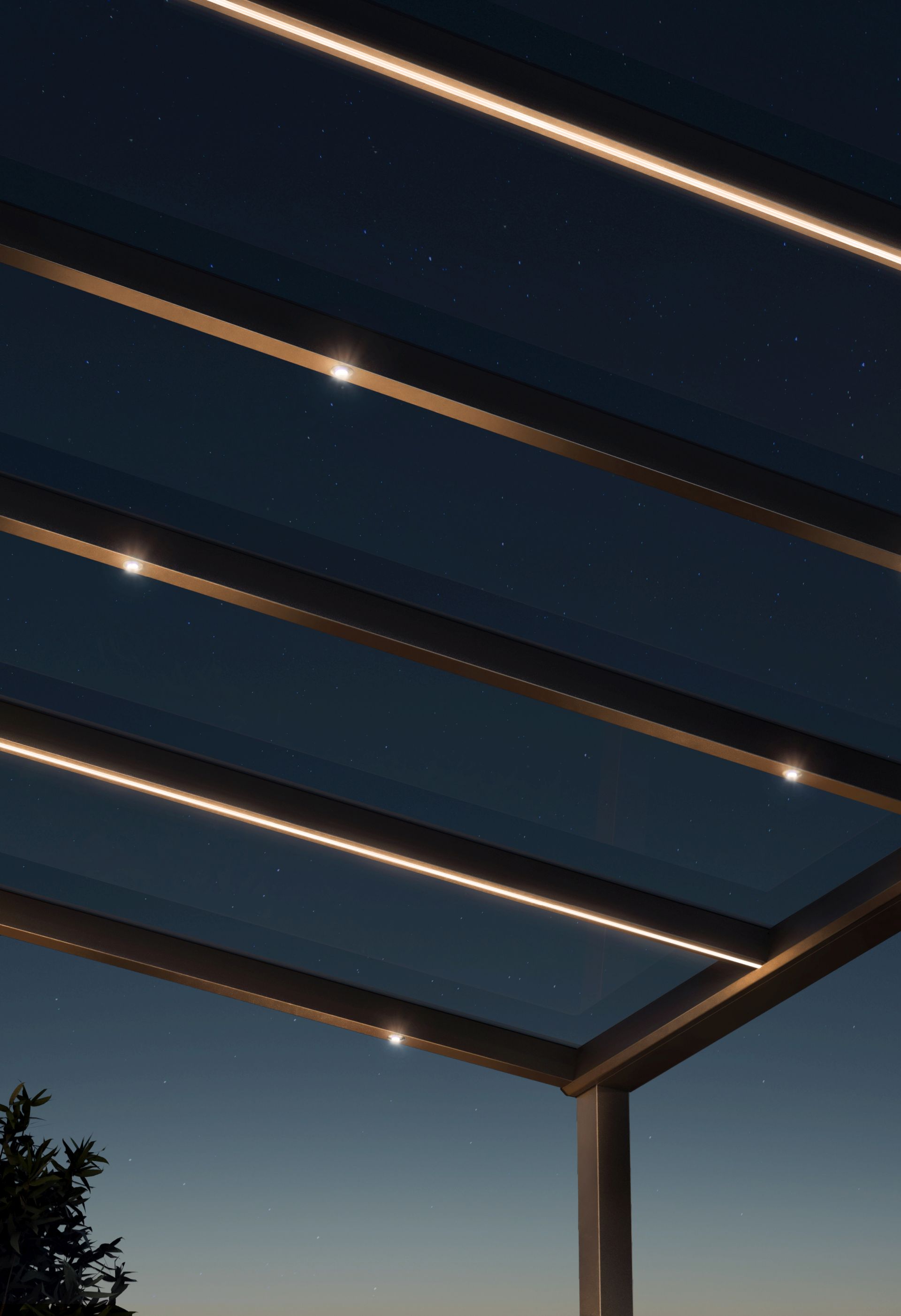 Lichtbänder entlang der Carport-Kanten: Dies gibt nicht nur eine schöne ästhetische Wirkung, sondern hilft auch dabei, die gesamte Struktur zu beleuchten.