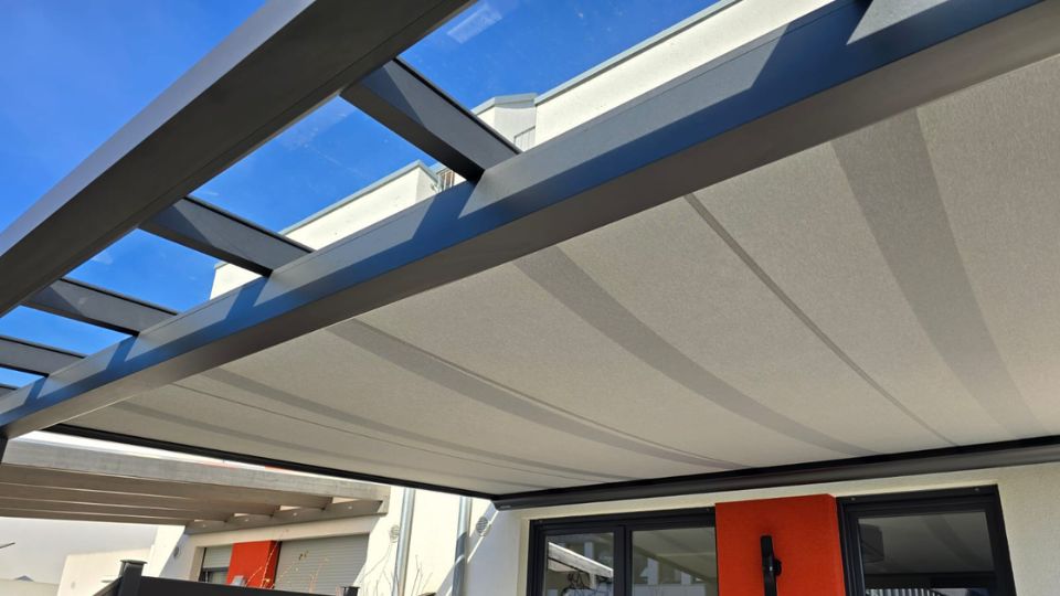 Eine Pergola schafft Struktur und Atmosphäre. Kombiniert mit einem verschiebbaren Textildach oder einer Lamellenabdeckung wird sie zum funktionalen Sonnenschutz mit Designanspruch.