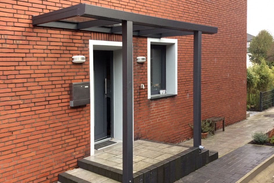 Herkömmliches Glas, oft in Form von Verbundsicherheitsglas (VSG) verwendet, bietet eine hohe Klarheit und ist extrem kratzfest. Es verleiht jedem Eingangsbereich eine elegante und hochwertige Optik. Ein weiterer Vorteil von herkömmlichem Glas ist seine Robustheit gegenüber physikalischen Einwirkungen. Allerdings ist Glas schwerer als Kunststoffalternativen und in der Regel auch teurer. Zudem erfordert die Montage von Glasvordächern aufgrund des Gewichts und der Bruchgefahr besondere Vorsicht.
